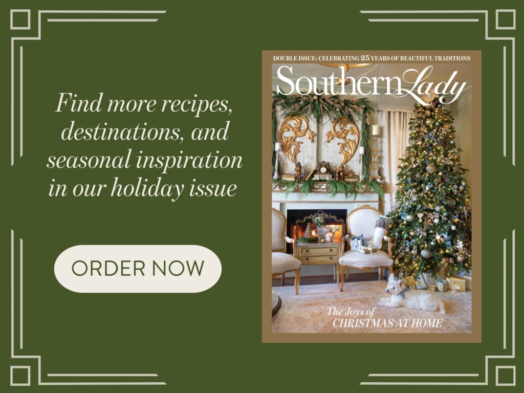Celebrate the holidays with Southern Lady magazine! Whether you’re throwing an elegant Christmas soireé or hosting friends for a casual gift exchange, our crowd-pleasing recipes and festive tabletop ideas will make for an occasion to remember. Fashion an eye-catching centerpiece inspired by our roundups of pretty seasonal arrangements, or craft a handmade accent for place settings and gifts. If you’re yearning for a holiday getaway, explore some of our favorite cities all around the South.