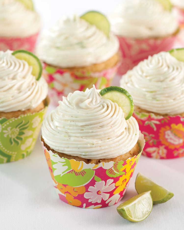 - 5. Using a melon baller, carefully remove a small amount of cake from center of each cupcake. Spoon or pipe about 1 teaspoon Key Lime Filling into center of each cupcake. Frost tops of cupcakes with Key Lime Buttercream. Garnish with fresh Key lime slices, if desired.