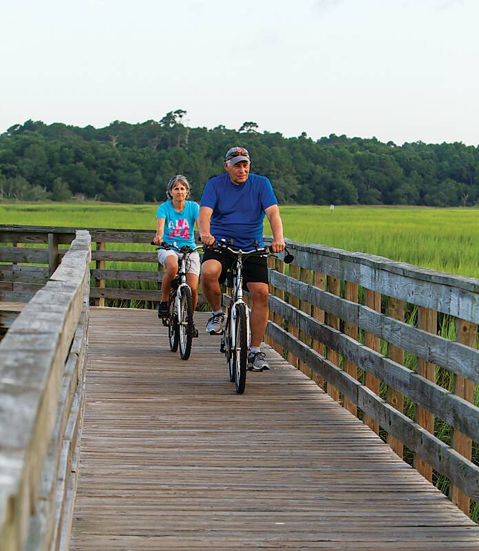 Guests can hike trails or take a guided boat tour of the rice fields to learn about the history of the area and the influence of Gullah culture. Beyond the gardens, Murrells Inlet offers kayaking, boating, fishing, and paddleboarding. The half-mile-long MarshWalk offers excellent views of the water that so enchanted Anna and Archer decades ago.