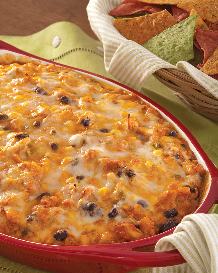 Enjoy this hearty dish as an appetizer or as part of the main meal. This Barbecue Chicken Dip bubbles with two kinds of cheese and is perfectly complemented with crisp tortilla chips.