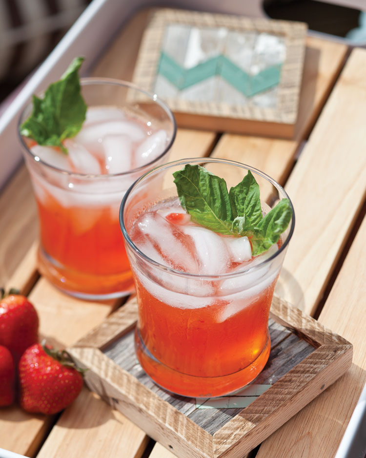 - In a shaker or 2-cup liquid-measuring cup, combine strawberries, basil leaves, vodka, and lime juice. Using a muddler or the back of a spoon, gently press strawberries and basil to release flavor. Stir in sugar mixture. Strain, and serve over ice. Garnish with basil leaves and strawberries, if desired.