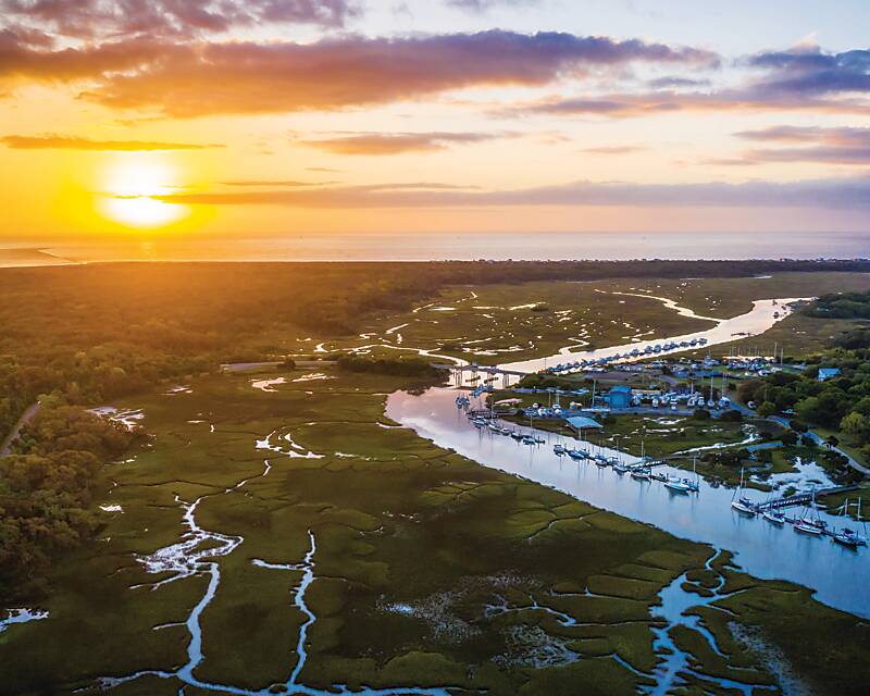 Visit the state’s oldest lighthouse (above), then view the wildlife by kayak along the Intracoastal Waterway or from a larger vessel captained by Amelia River Cruises. On guided excursions and sunset sails, learn about the ecosystems and maritime heritage of northeast Florida and neighboring Cumberland Island, Georgia. When you’re ready to put your feet in the sparkling quartz sand, public access points across the isle make leisurely beach strolls a breeze.