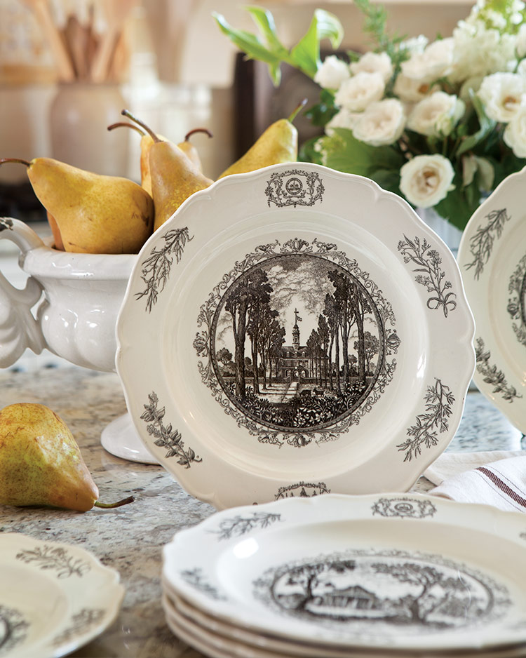 A commemorative set of Wedgwood plates weaves a historical note in a fall tableau.