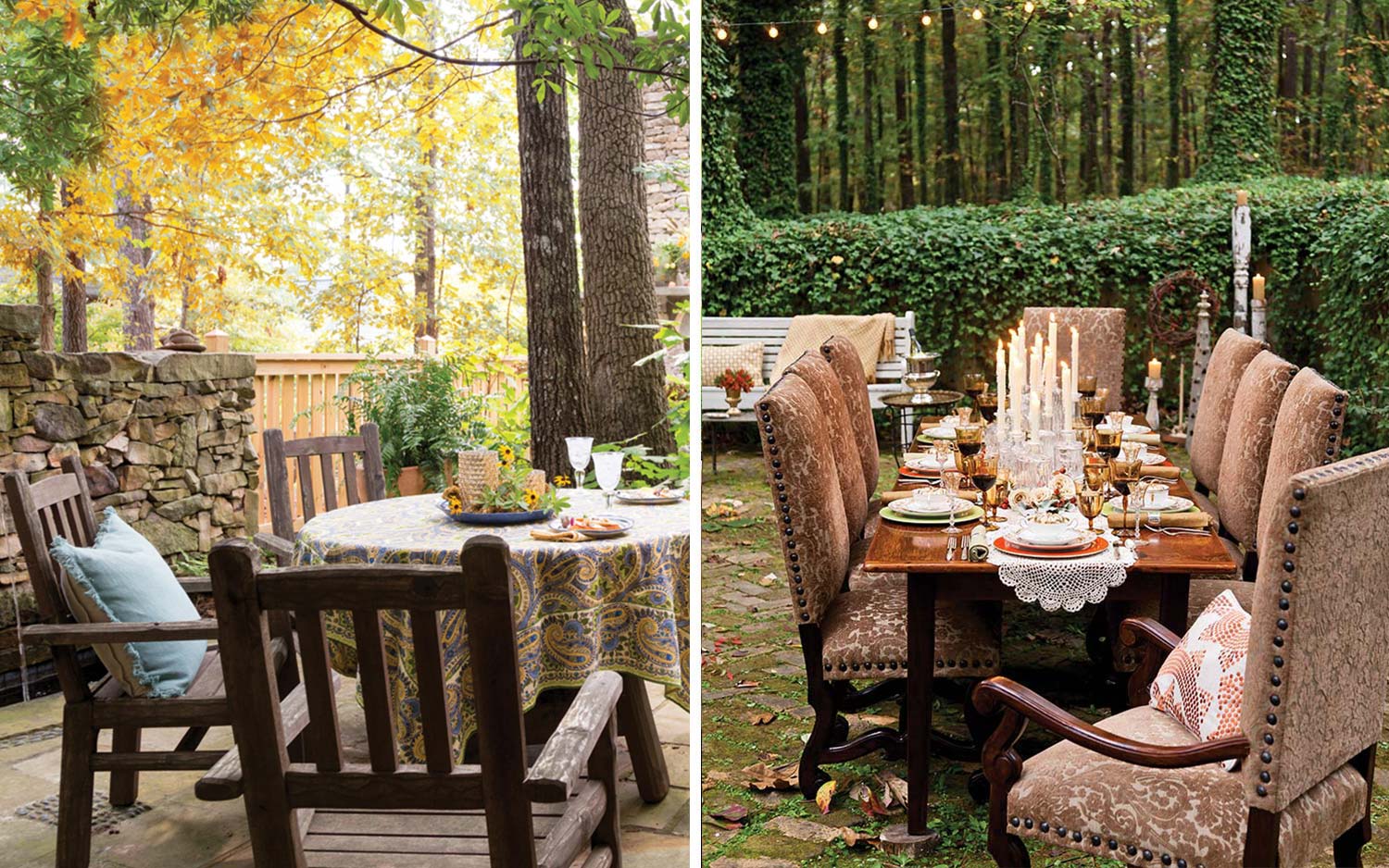 One of the biggest challenges with get-togethers during this time is choosing a layout that allows for social distancing without making things awkward. Chef Greg Teal of Table 301, a restaurant group and catering business in Greenville, South Carolina, suggests using tables in assorted sizes—some that seat two to four guests and others with room for up to 10. “Everyone has different levels of comfort, and guests who don’t know each other may not want to take off their masks and share a table,” he says.