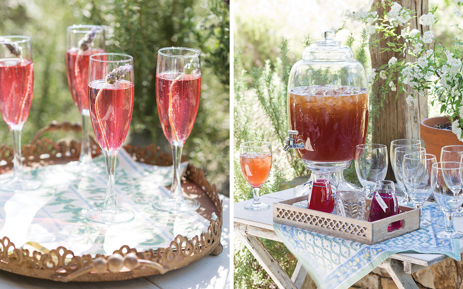 A delightful signature Lavender French 75 cocktail and an Iced Tea Bar lend notes of festivity to this joyful occasion. For a fun non-alcoholic option, set up a station with unsweetened tea and a selection of sweet syrups.