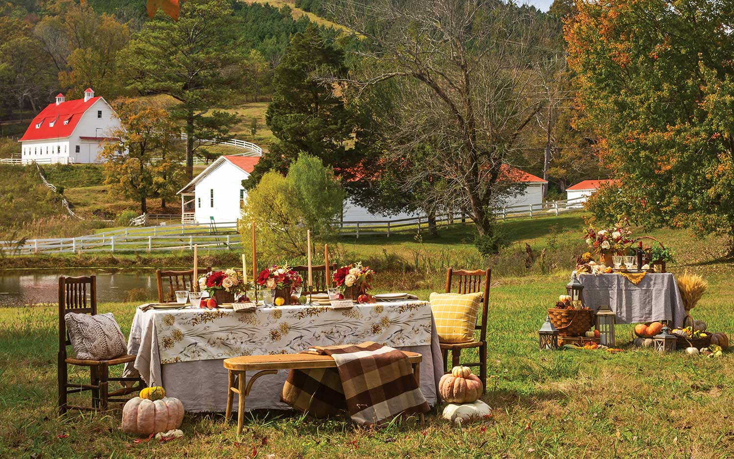 A painterly panorama of rolling pastures and grazing horses sets the groundwork for an outdoor meal that draws on the bountiful harvest.