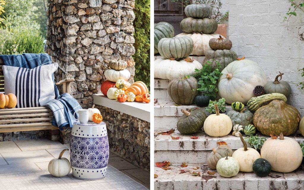 Offer guests a gracious reception with a welcoming presentation lining the entrance walkway. Complete the look at your front door with a basketful of Baby Boos tied with a burnt-orange ribbon.