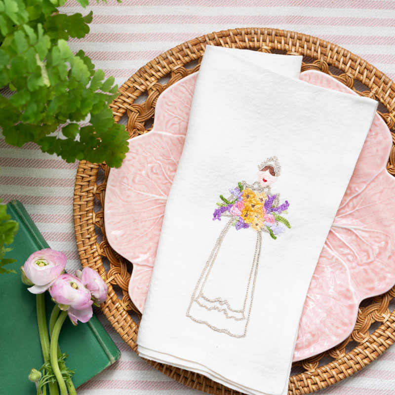Add charm and individuality to your table with Busatti’s embroidered maid and butler napkin design. Made from high-quality 100% linen, this napkin combines tradition and craftsmanship. The embroidered design is perfect for special occasions and will bring an artful touch to any setting. For more than 180 years, the Busatti family has been weaving fine linens in the heart of Tuscany, and we’re honored to share this exquisite old-world craftsmanship with you.