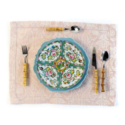 - Donna Di Coppe Place Mat – 16×20 inches (Pale Pink/Cream Jacquard Pattern)