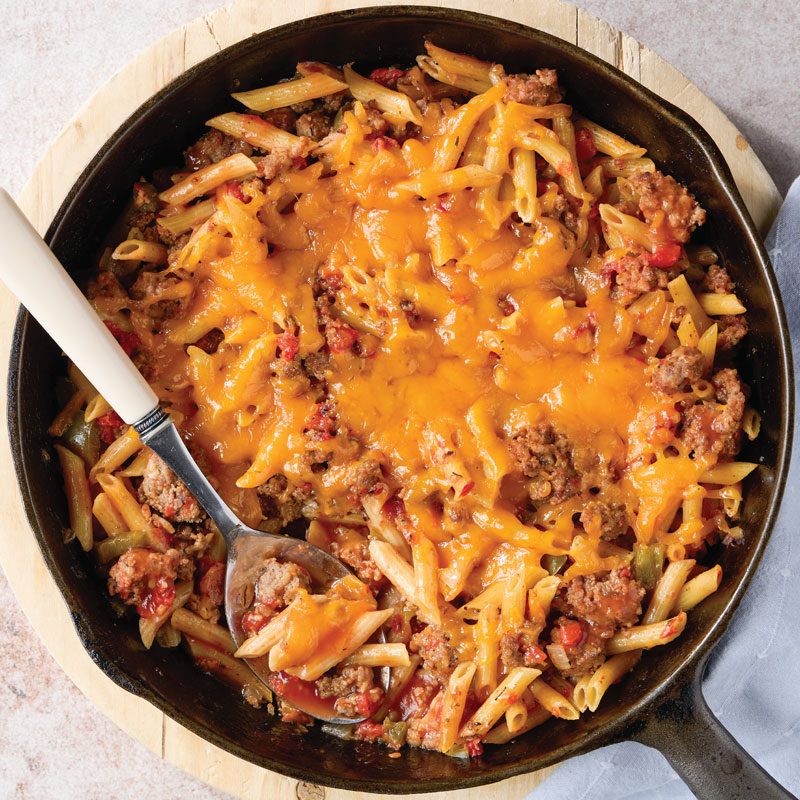 • One Dish Cheesy Conecuh Pasta