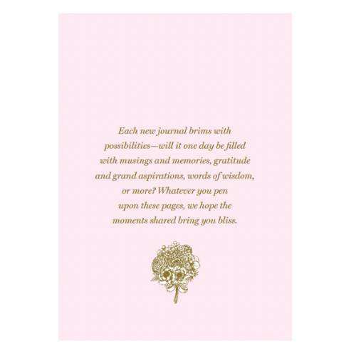 A French blue cloth covering allows the gold-debossed design to truly shine as it beckons the writer to “Live Your Bliss.” The volume opens to gilded-edged, lined sheets highlighted with inspirational quotes, interspersed with timeless full-color photographs from Victoria magazine. As the pages begin to fill, reflect on peaceful days spent in solitude or lively celebrations surrounded by loved ones. With a satin bookmark measuring one’s progress, more extraordinary occasions await, ready to be recorded at the turn of the page.