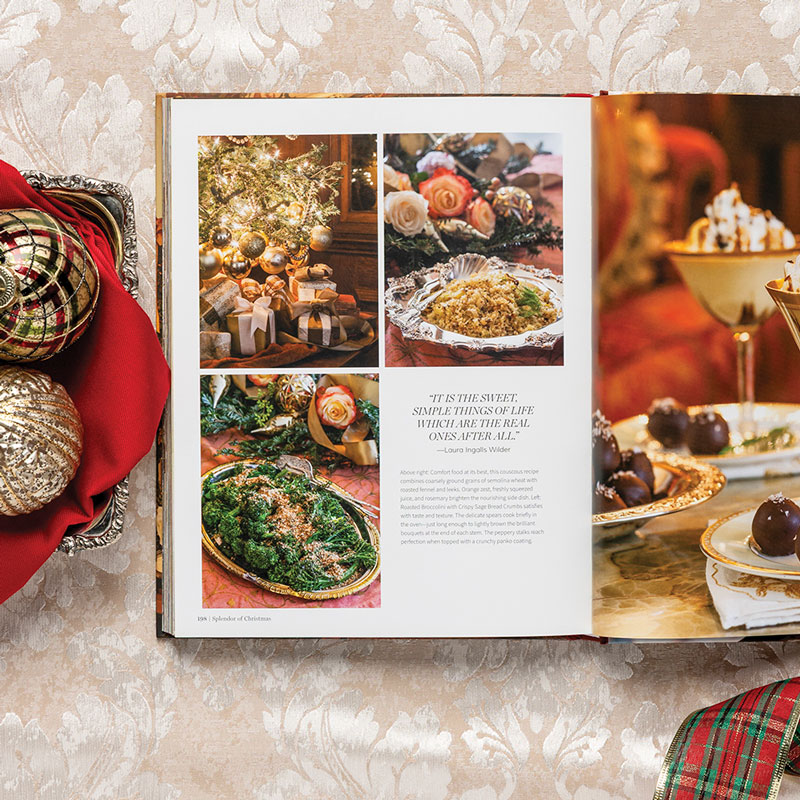 Finally, affection for hearth and home beckons us to the United States, where we consider our nation’s classic Christmas customs at estates such as Biltmore and Mount Vernon and take in the simple joys of centuries past in Williamsburg, Virginia. Sparkling white landscapes take our breath away in New England, we trim the tree with ornaments from the White House Historical Association, and a traditional Christmastide repast brings cheer to tables surrounded by family and friends. Wherever the holidays find you—on distant shores or within the comfort of home—we hope Splendor of Christmas adds radiance to this cherished season.