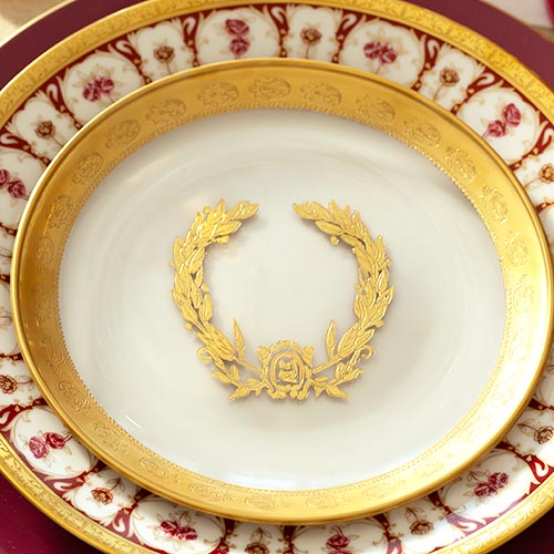 Care Instructions: Wash by hand only to preserve the gold detailing and enduring beauty of your plate.