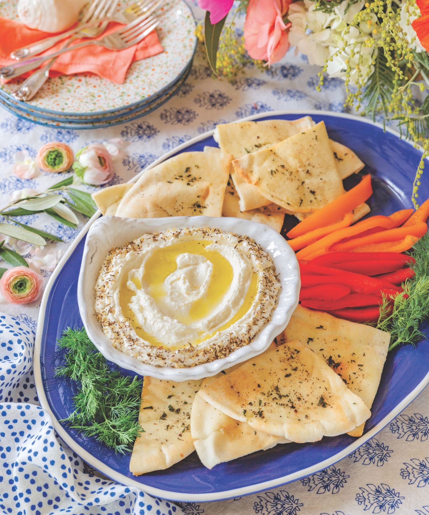 Serve this luscious Tangy Whipped Feta Dip with crisp bell peppers and freshly baked pita wedges.