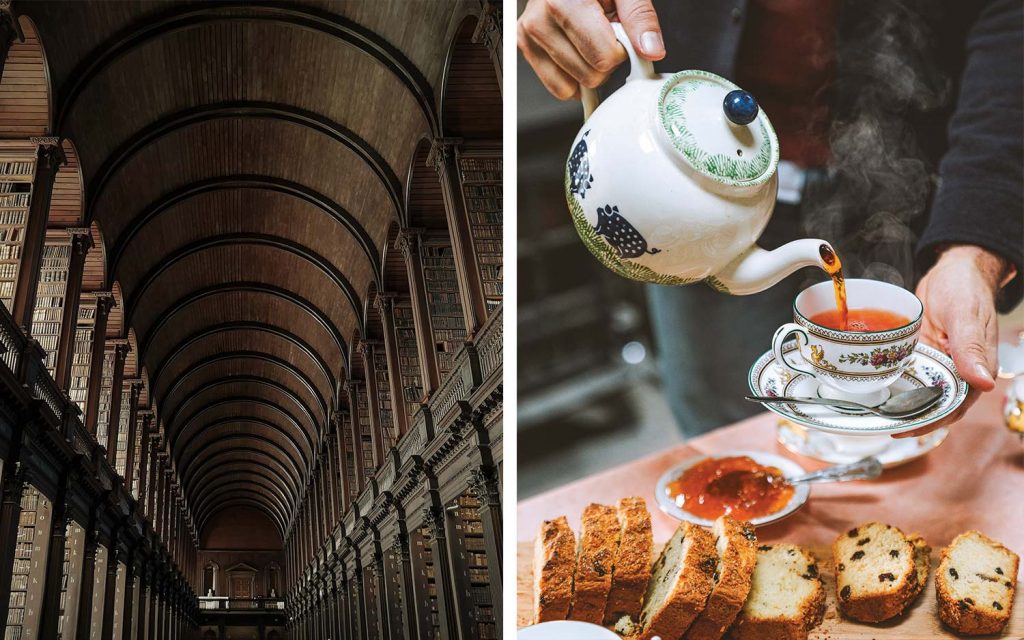 Ireland’s bustling cities offer a multitude of attractions, from sublime dining to the finest shopping. Explore the Titanic Belfast visitor experience to learn about the ill-fated ship built and launched in 1912 from this coastal port. Fast becoming a foodie mecca, the town offers plentiful culinary delights, which include Titanic Belfast’s Sunday Afternoon Tea at the base of a replica of the ship’s grand staircase. For a literary voyage unlike any other, Dublin is the place be. Associated with four Nobel Prize winners—George Bernard Shaw, Seamus Heaney, W.B. Yeats, and Samuel Beckett—as well as renowned writers like Oscar Wilde and James Joyce, the streets of this exciting metropolis are filled with watering holes and landmarks once frequented by these literary glitterati. No journey would be complete without a visit to the National Library of Dublin and the Long Room at the library of Trinity College Dublin, with its 14 busts of great philosophers and writers. If weaving and textile arts excite you, Ireland’s oldest working handweaving mill, Avoca Mill founded in 1723, is a short drive from Dublin. You can watch as fabrics are made, then follow your tour with a stroll through Avoca’s splendid gardens.