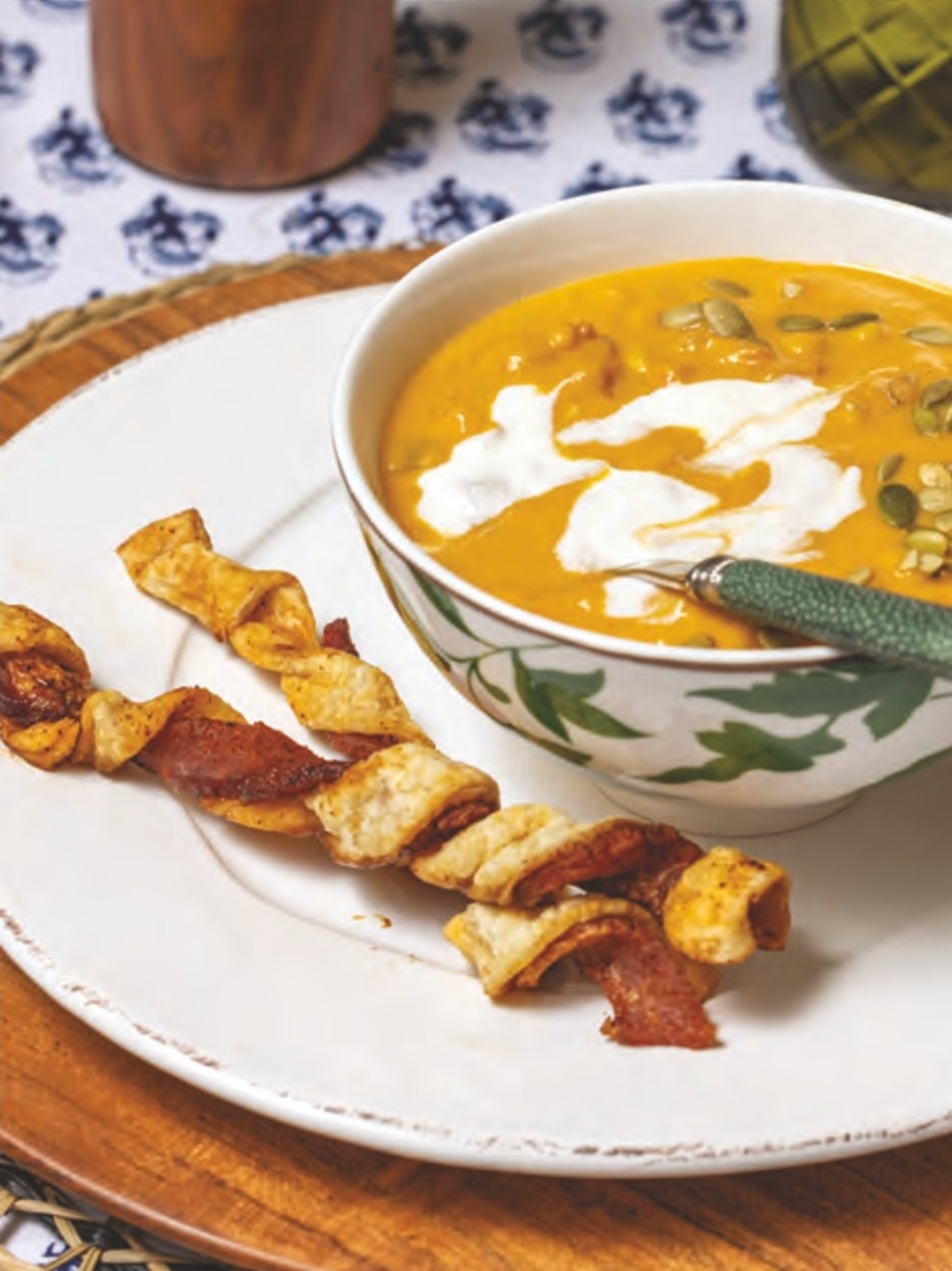Crispy and dippable, these Twisted Bacon Breadsticks are easy to make and ideal for pairing with Southwest Pumpkin Soup.