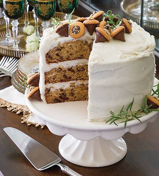 Walnut-Date Cake with Chocolate Acorn Kisses